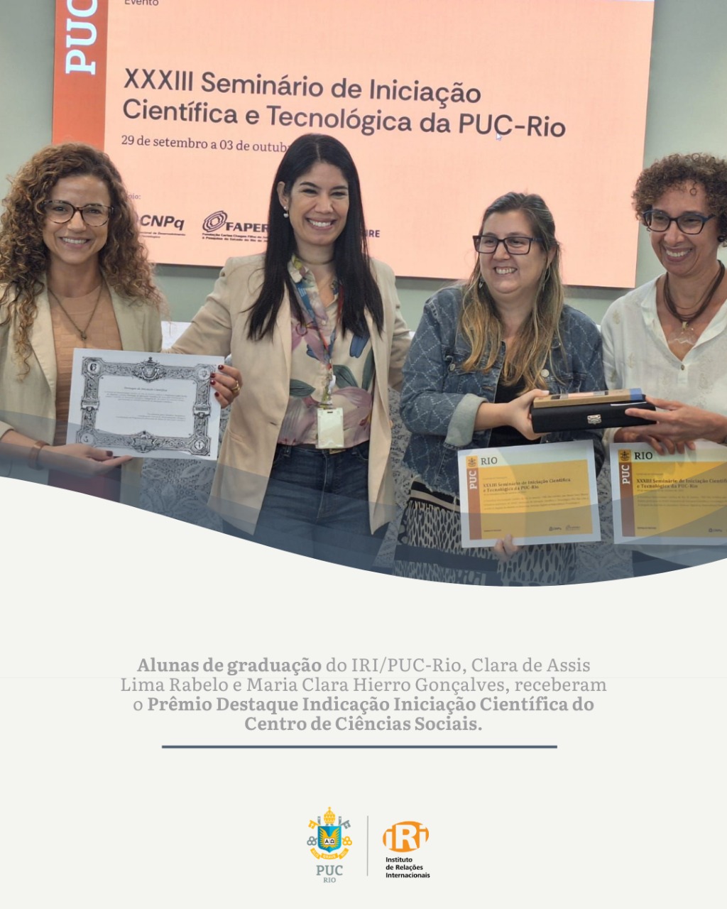 O Instituto de Relações Internacionais parabeniza às alunas e a orientadora pela pesquisa desenvolvida.