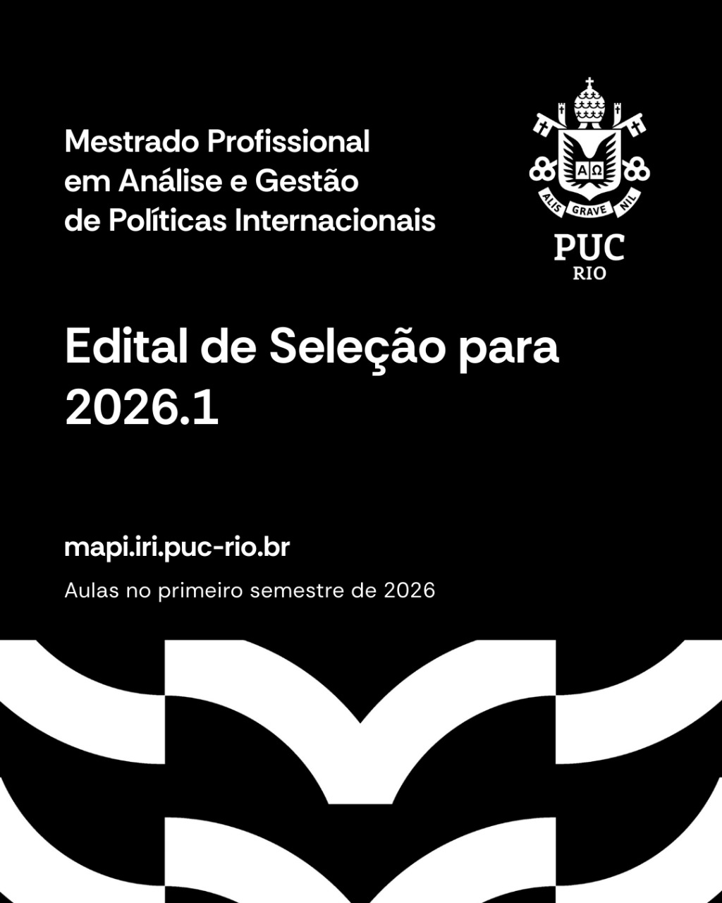 Estão abertas as inscrições para o processo seletivo do Mestrado Profissional em Análise e Gestão de Políticas Internacionais (MAPI) do Instituto de Relações Internacionais da PUC-Rio.