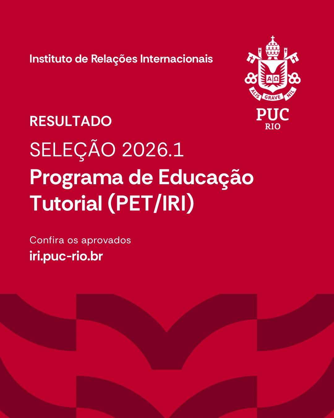 O IRI/PUC-Rio acaba de divulgar os três alunos contemplados com bolsa para o Programa de Educação Tutorial (PET/TEPP) do Instituto de Relações Internacionais da PUC-Rio – 2026.1!