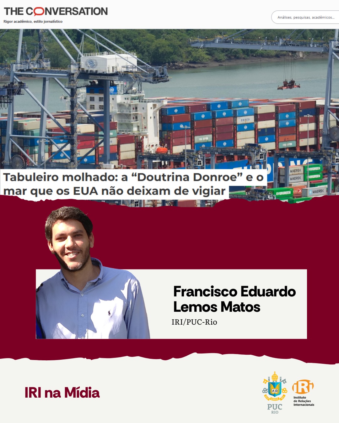 O pesquisador de pós-doutorado (FAPERJ) do Instituto de Relações Internacionais da PUC-Rio, Francisco Eduardo Lemos Matos, publicou o artigo cujo título é “Tabuleiro molhado: a ‘Doutrina Donroe’ e o mar que os EUA não deixam de vigiar”.